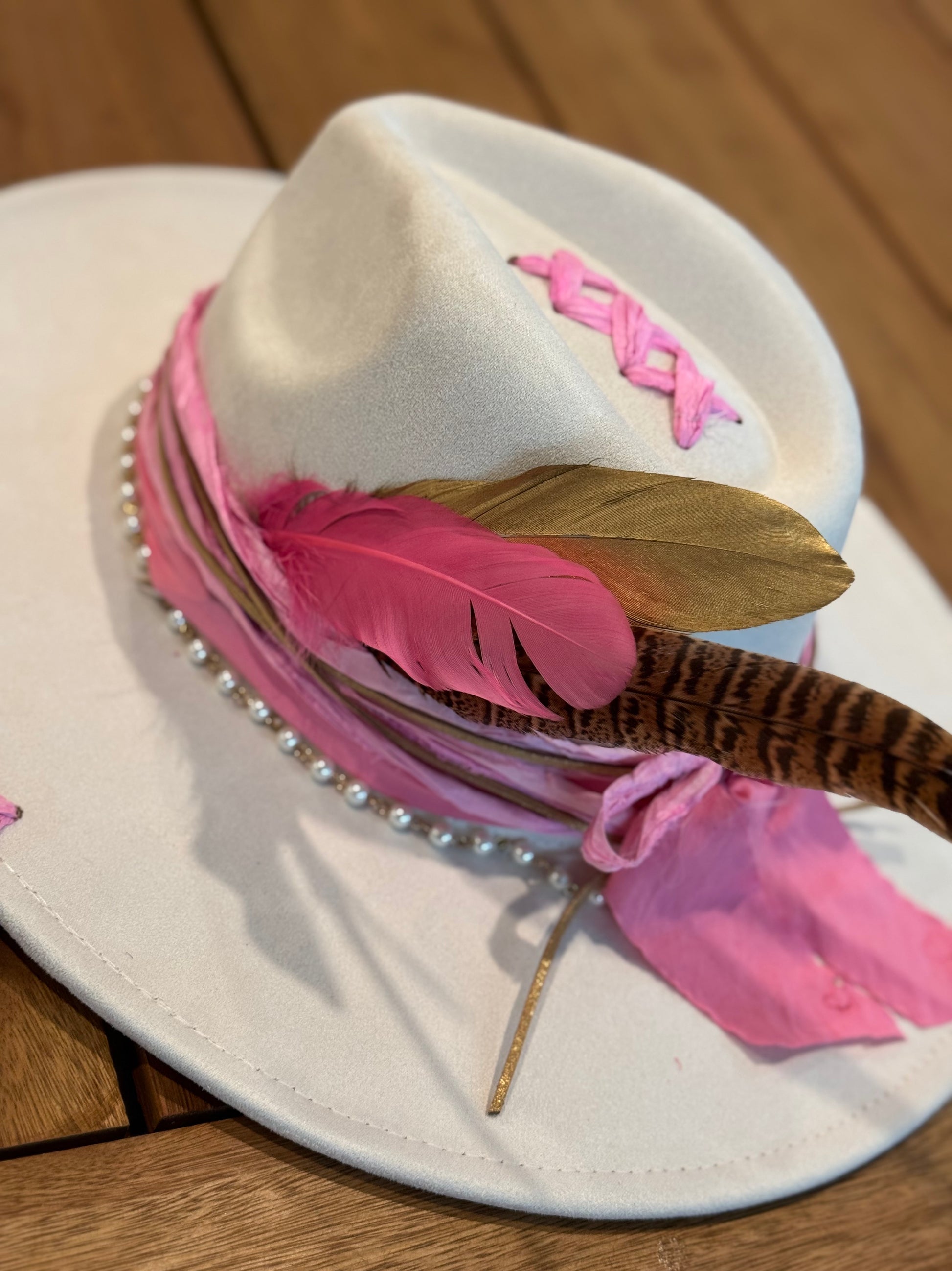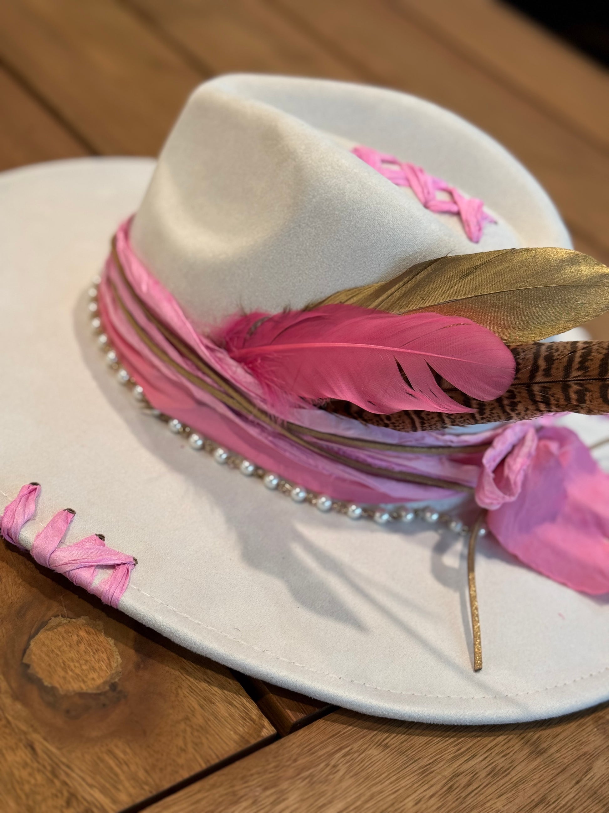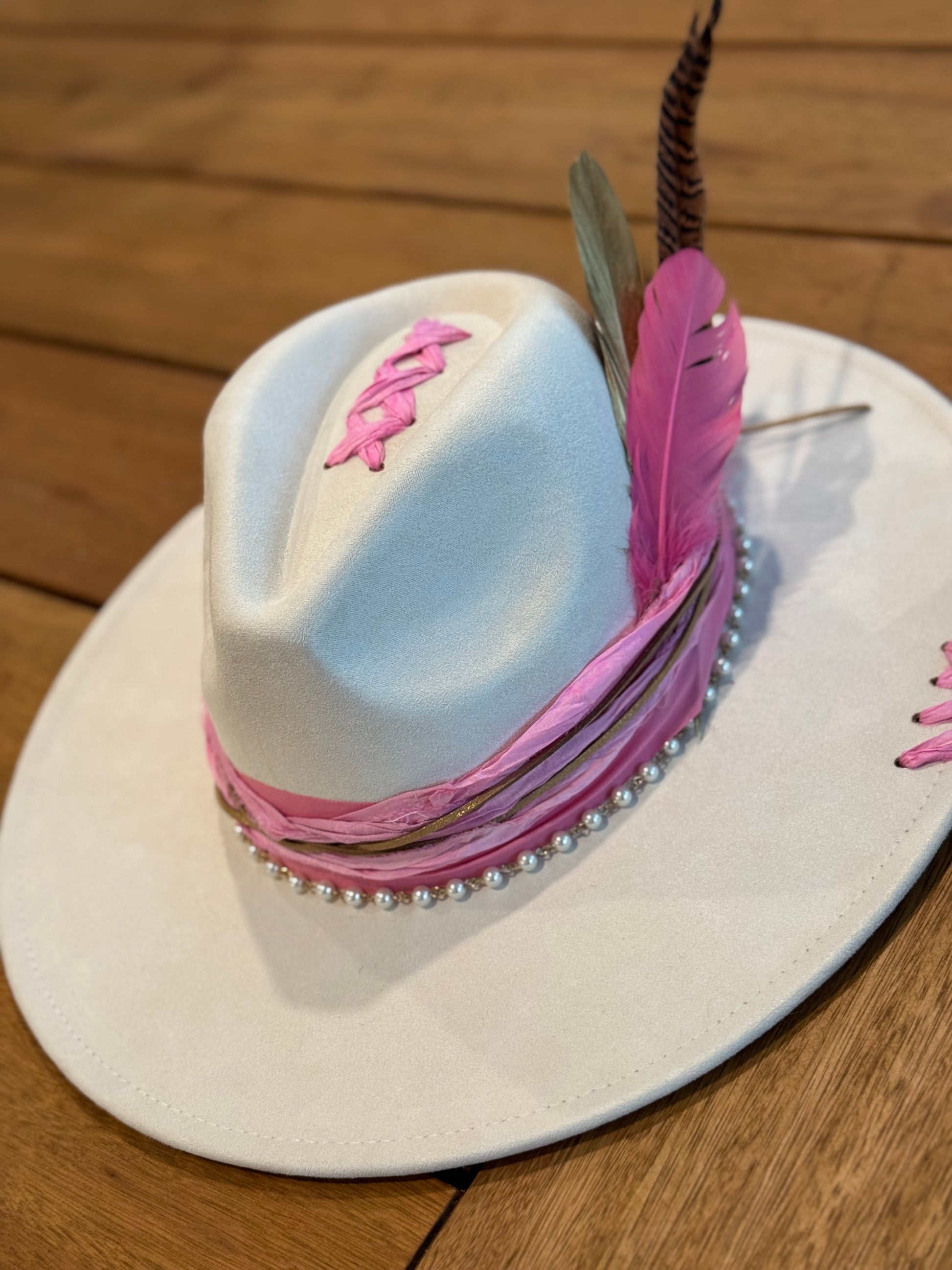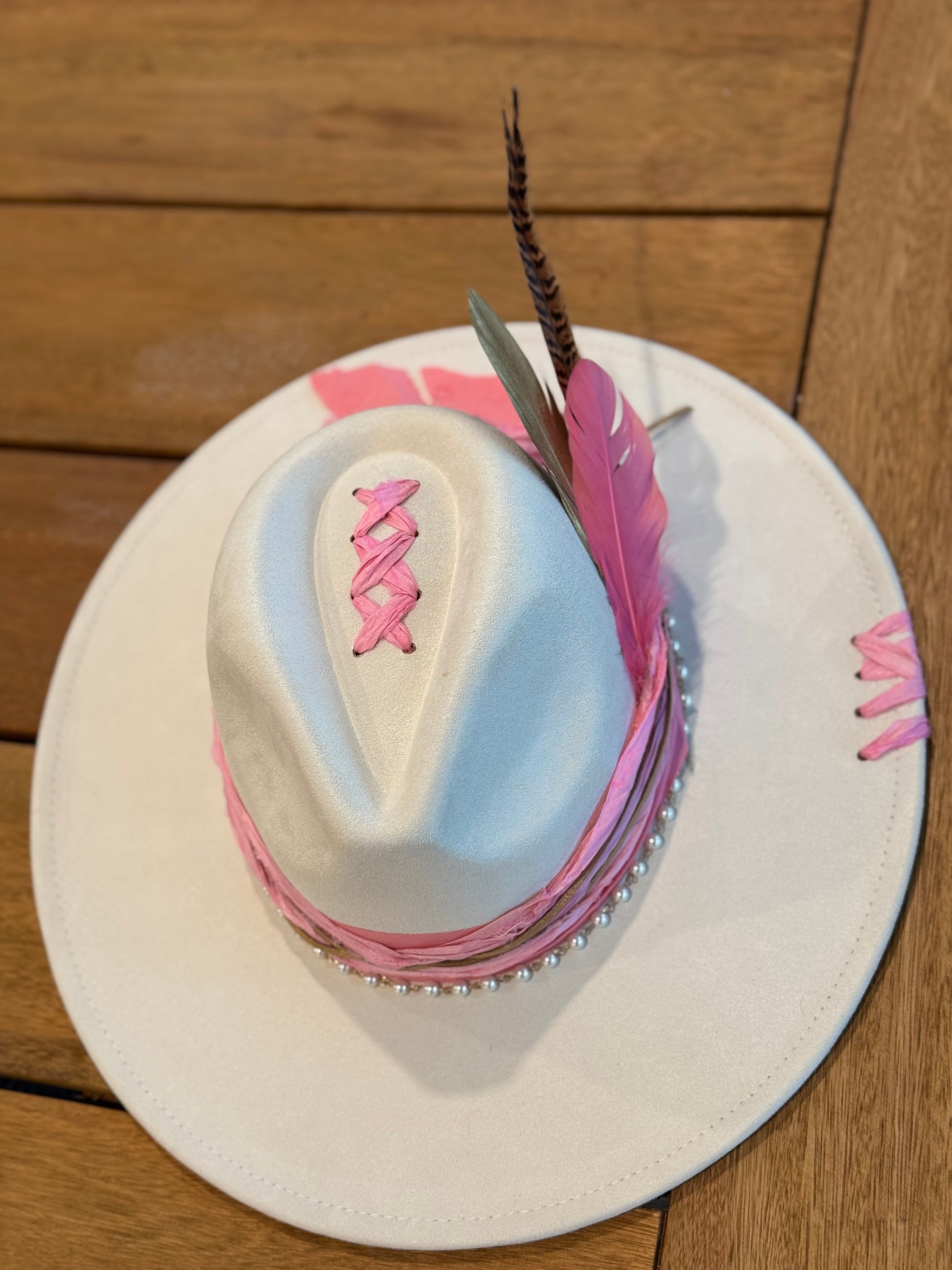Isophisticated and delicate piece, where timeless elegance meets soft femininity. The fusion of ivory and pink tones creates a refined contrast, making it the perfect accessory for both casual outings and more formal occasions.