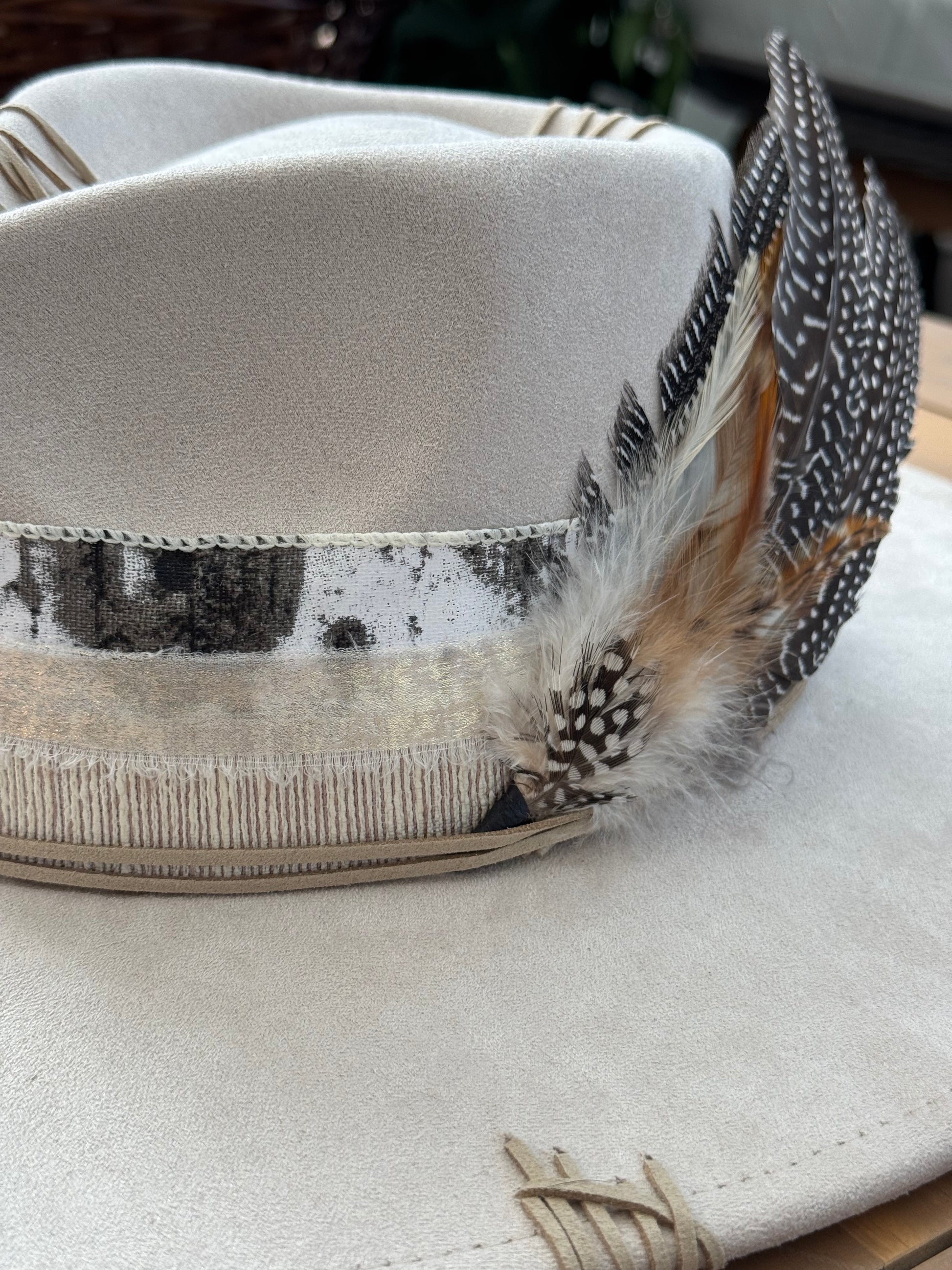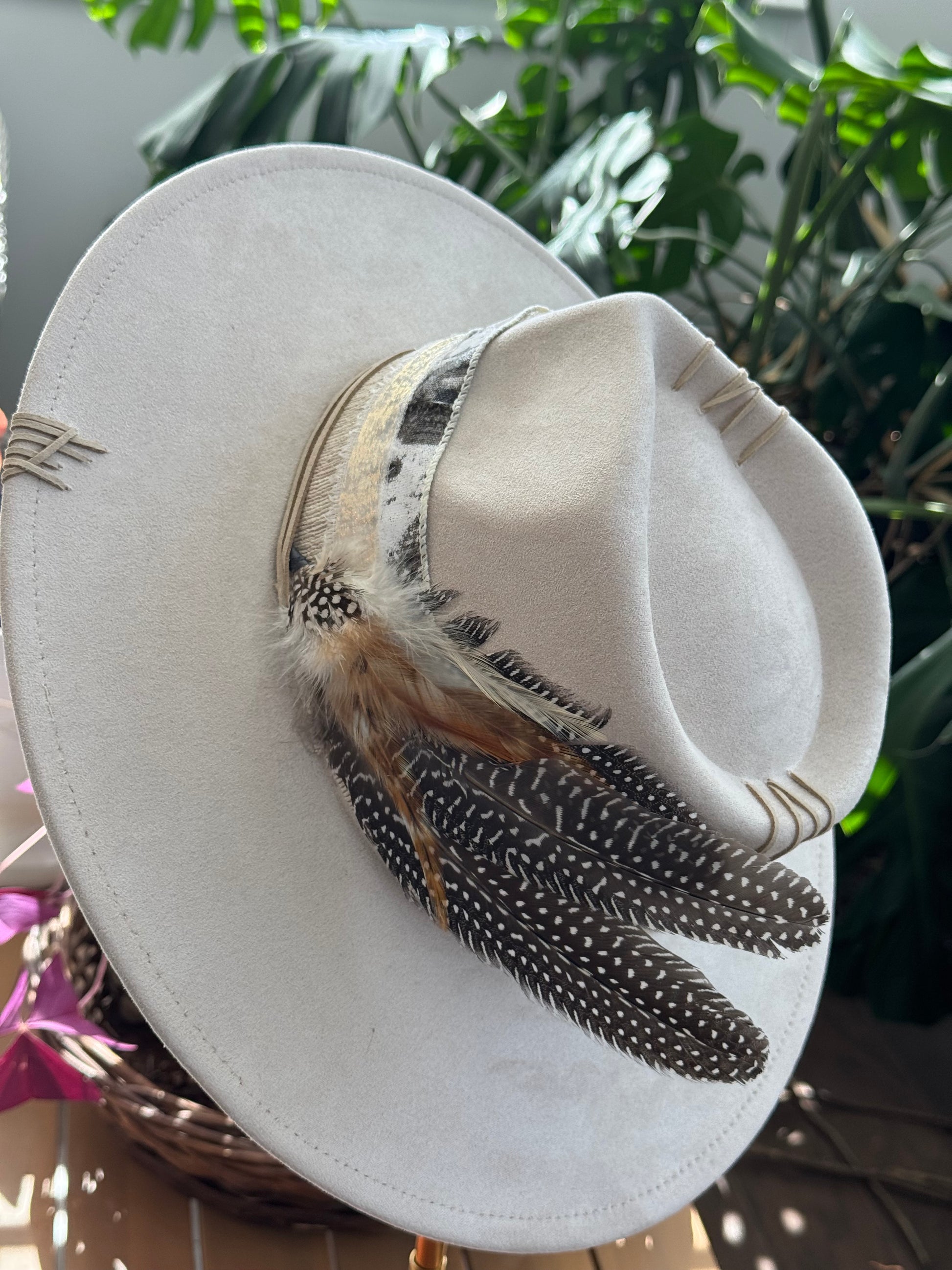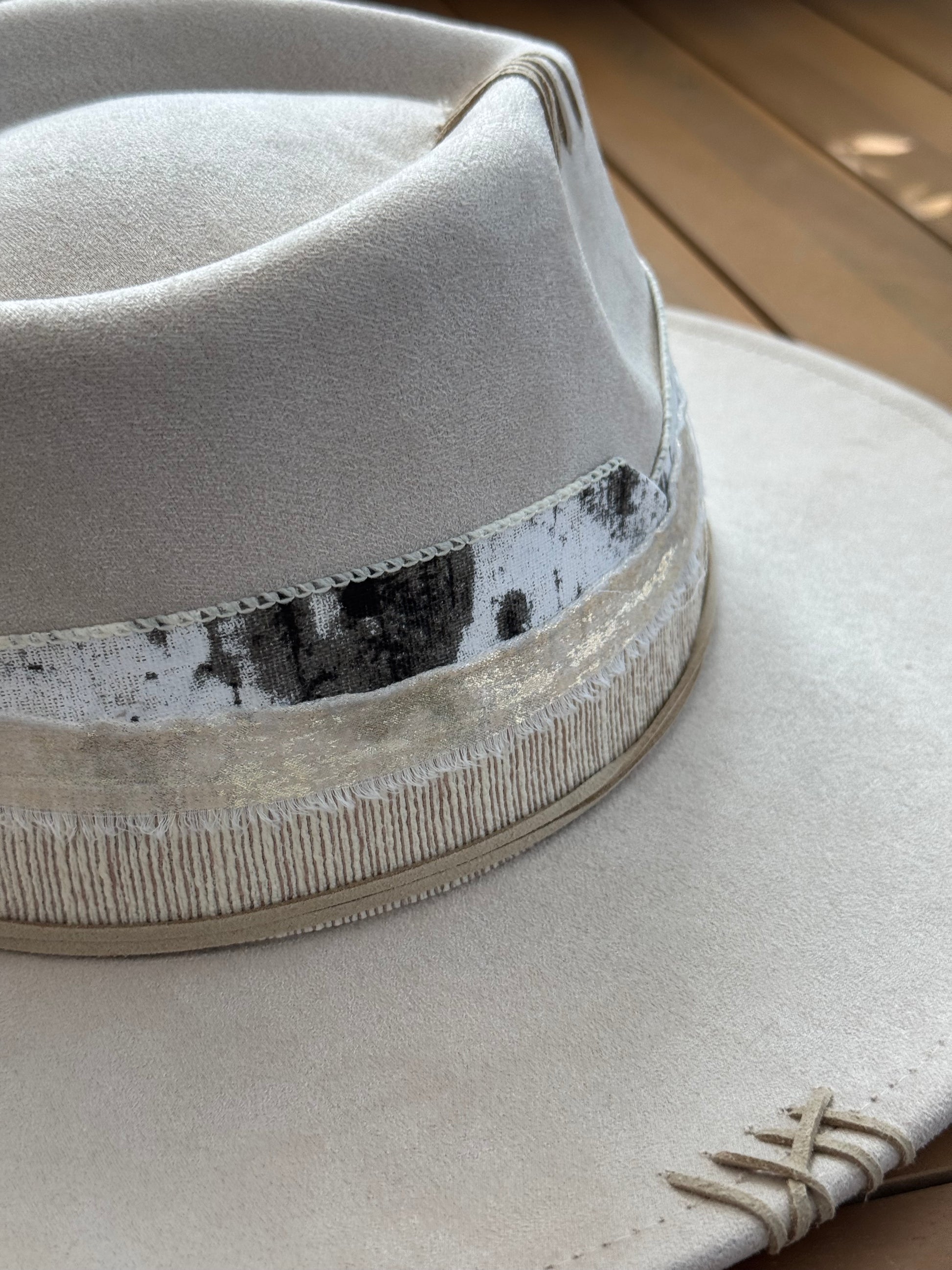 This fedora would exude sophistication and calm, with a neutral palette that feels fresh. Subtle embellishments would enhance its elegance without overpowering its serene aesthetic. “Ivory Mist” sense of quiet luxury, ideal for a piece that is both versatile and understated.