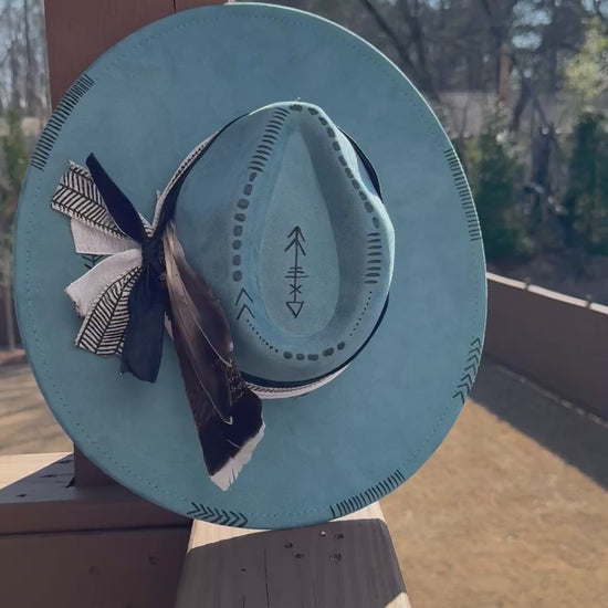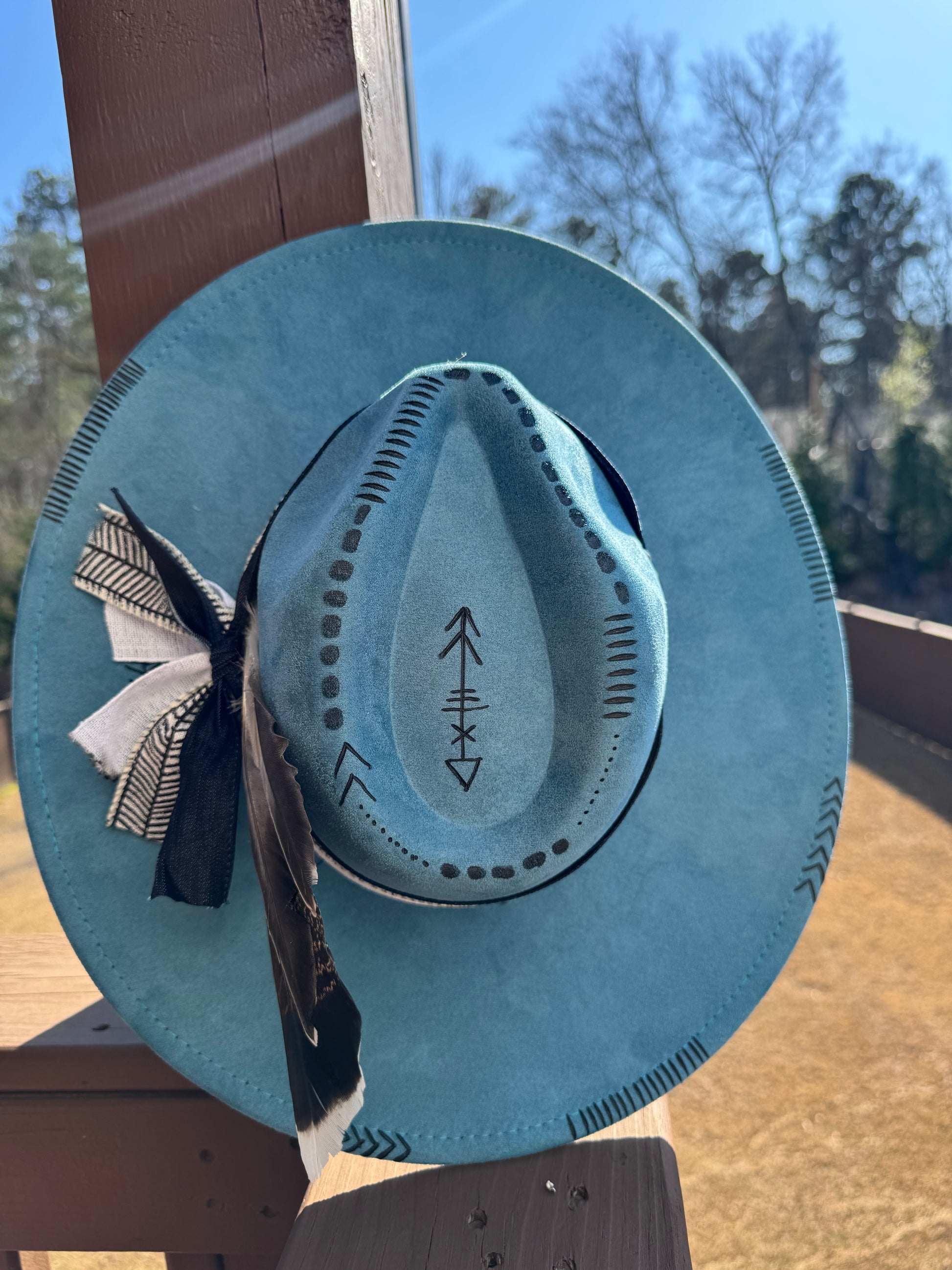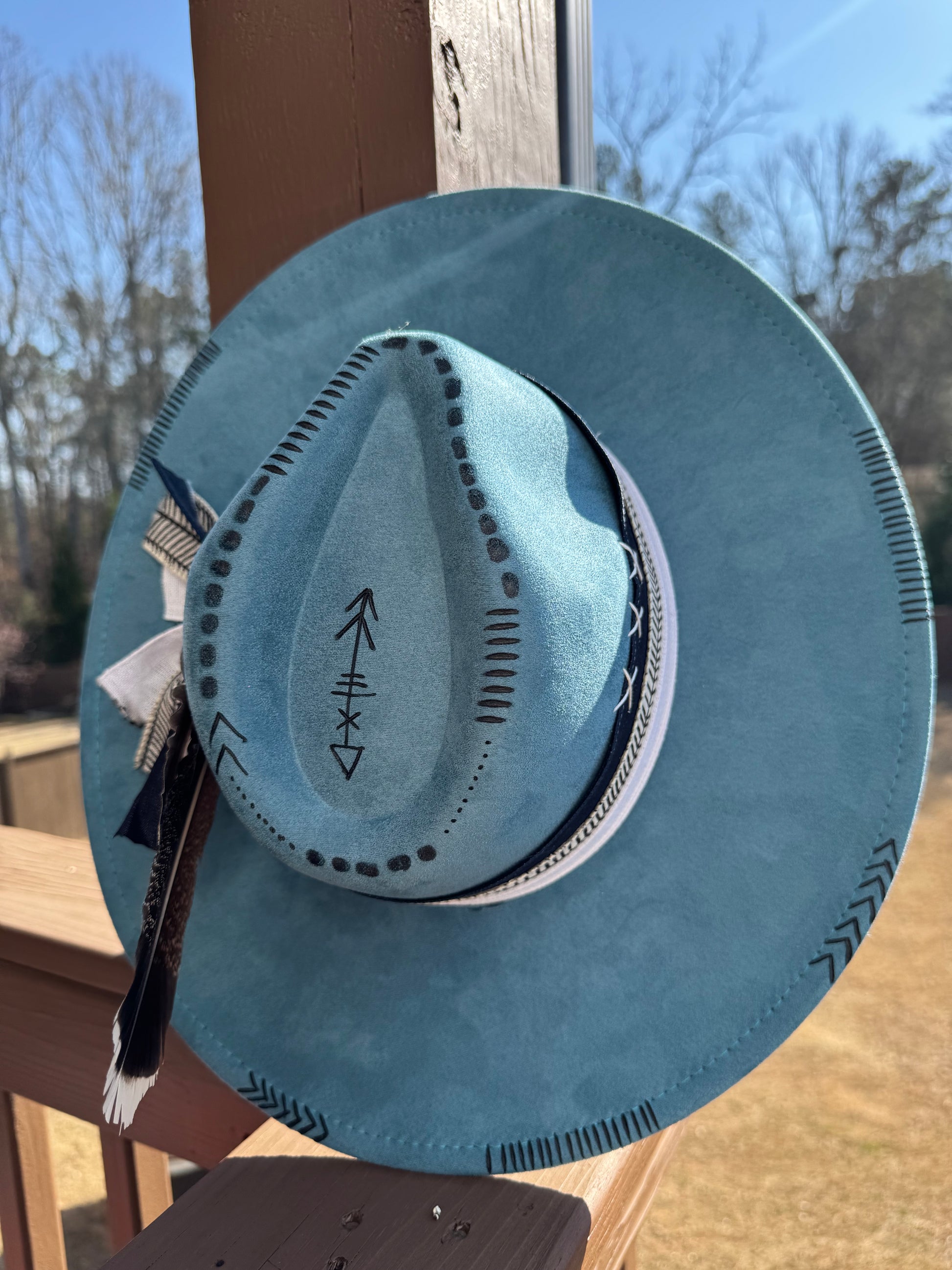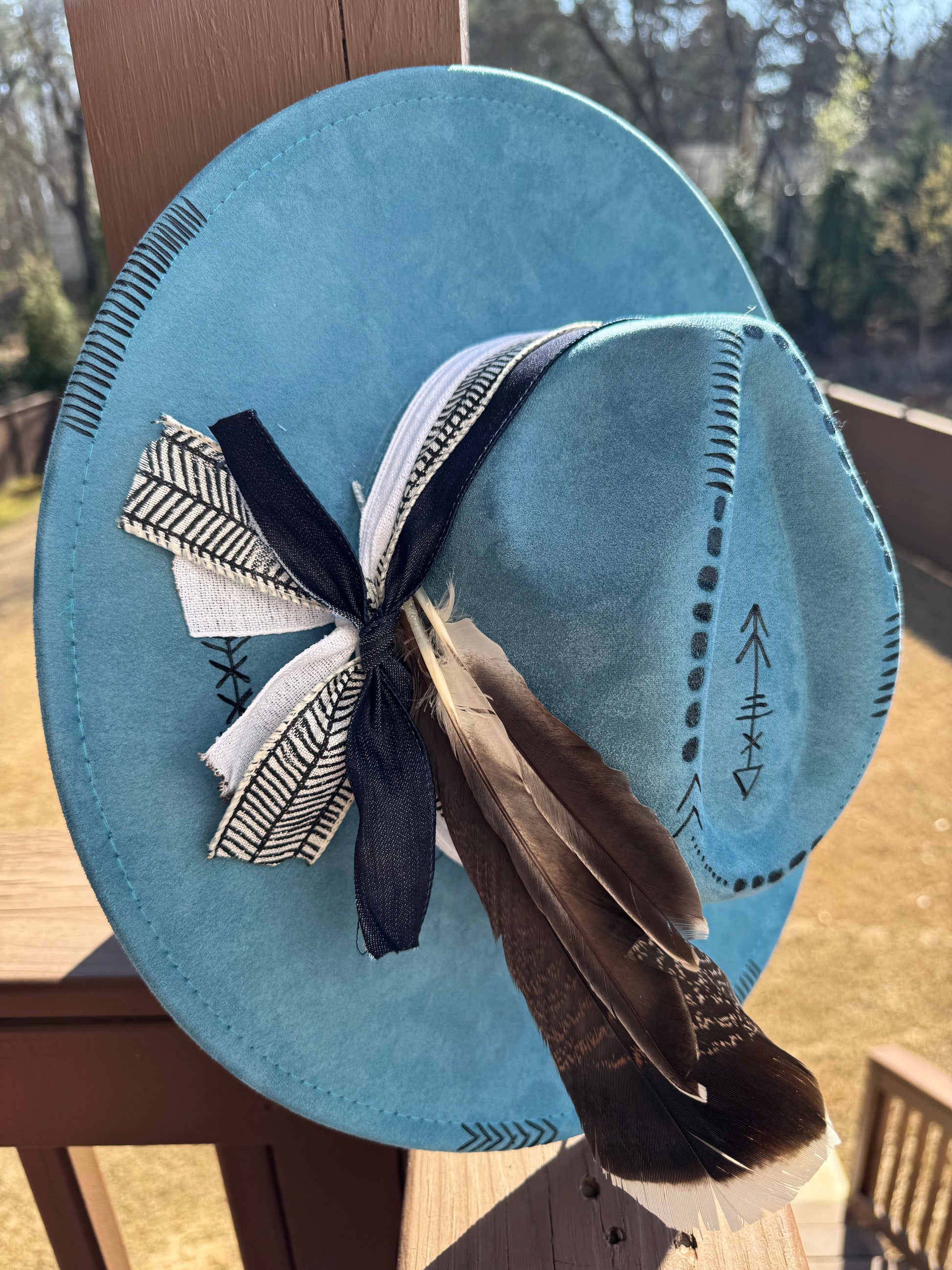 Twilight Fedora!!! “Inspired by the magic of twilight, this blue fedora with delicate feathers and custom stitching is the perfect accessory to elevate any look. Step into the spotlight with style that speaks for itself!!